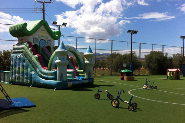• Υπαίθριος παιδότοπος 1.000m2 και εσωτερικός παιδότοπος  100m2με ανοιγοκλειόμενη οροφή για ατελείωτο παιχνίδι τόσο τους χειμερινούς όσο και τους καλοκαιρινούς μήνες. Με ήλιο ή με βροχή το παιχνίδι δεν σταματά!